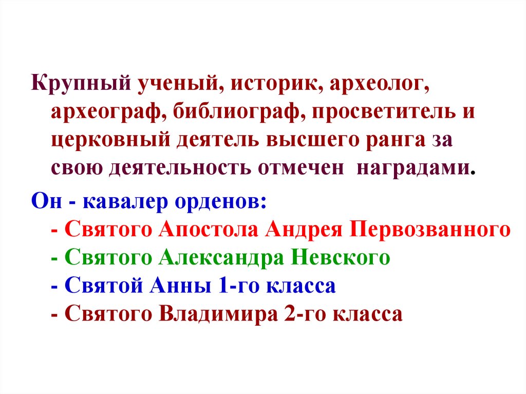 Крупный ученый, историк, археолог,археограф, библиограф, просветитель и