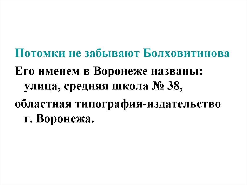 Потомки не забывают БолховитиноваЕго именем в Воронеже названы: