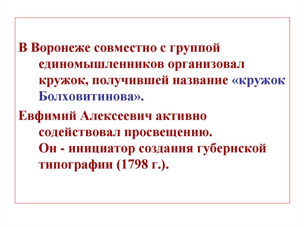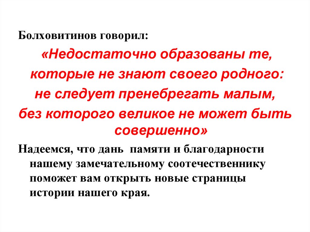 Болховитинов говорил:«Недостаточно образованы те,