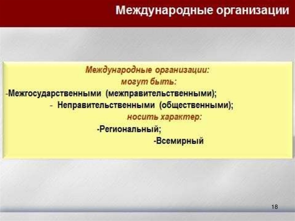 7. Что вкладывается в понятие «международная организация»? Какова роль международных