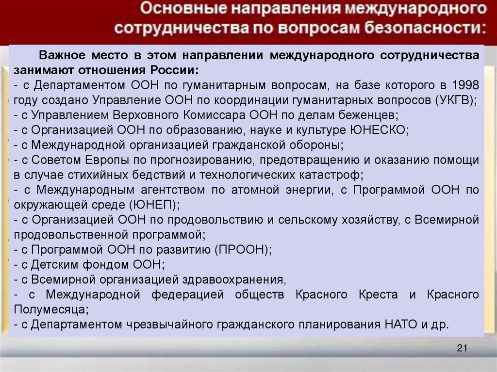 6. По каким основным направлениям развивается международное сотрудничество в области