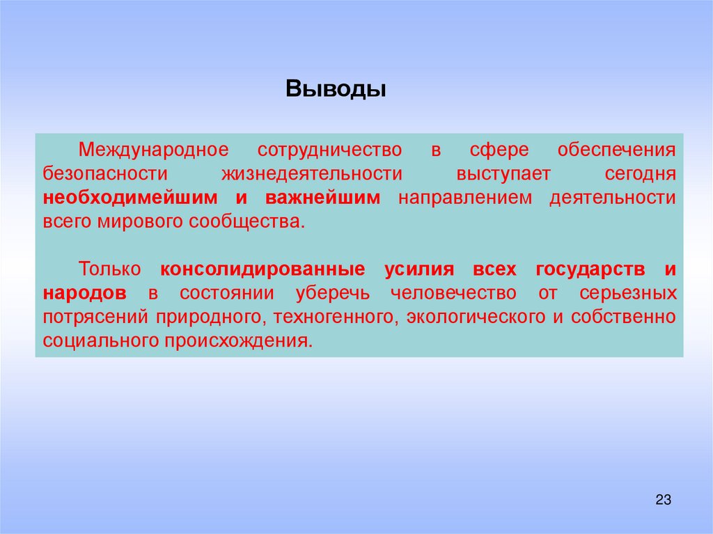 ВыводыМеждународное сотрудничество в сфере обеспечения