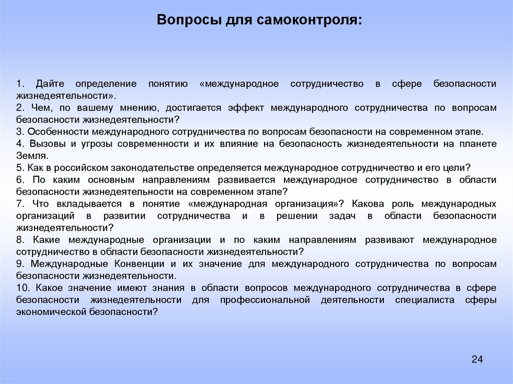 Вопросы для самоконтроля:1. Дайте определение понятию «международное сотрудничество в сфере безопасности