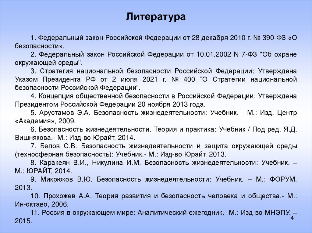Литература1. Федеральный закон Российской Федерации от 28 декабря 2010 г. № 390-ФЗ «О