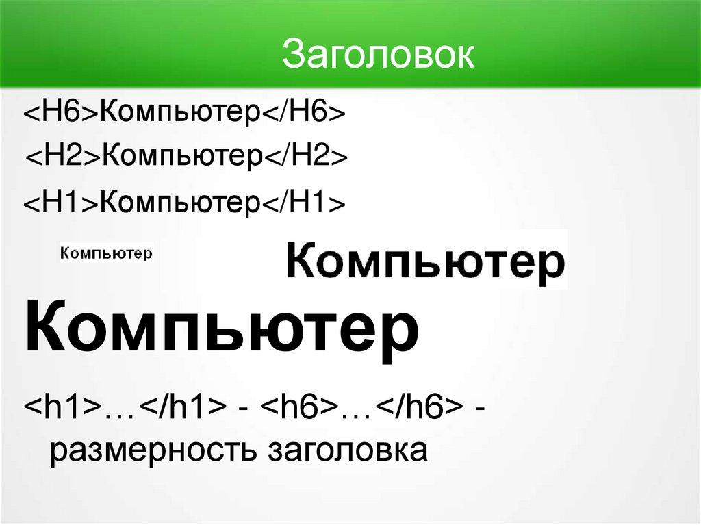 Заголовок<H6>Компьютер</H6>