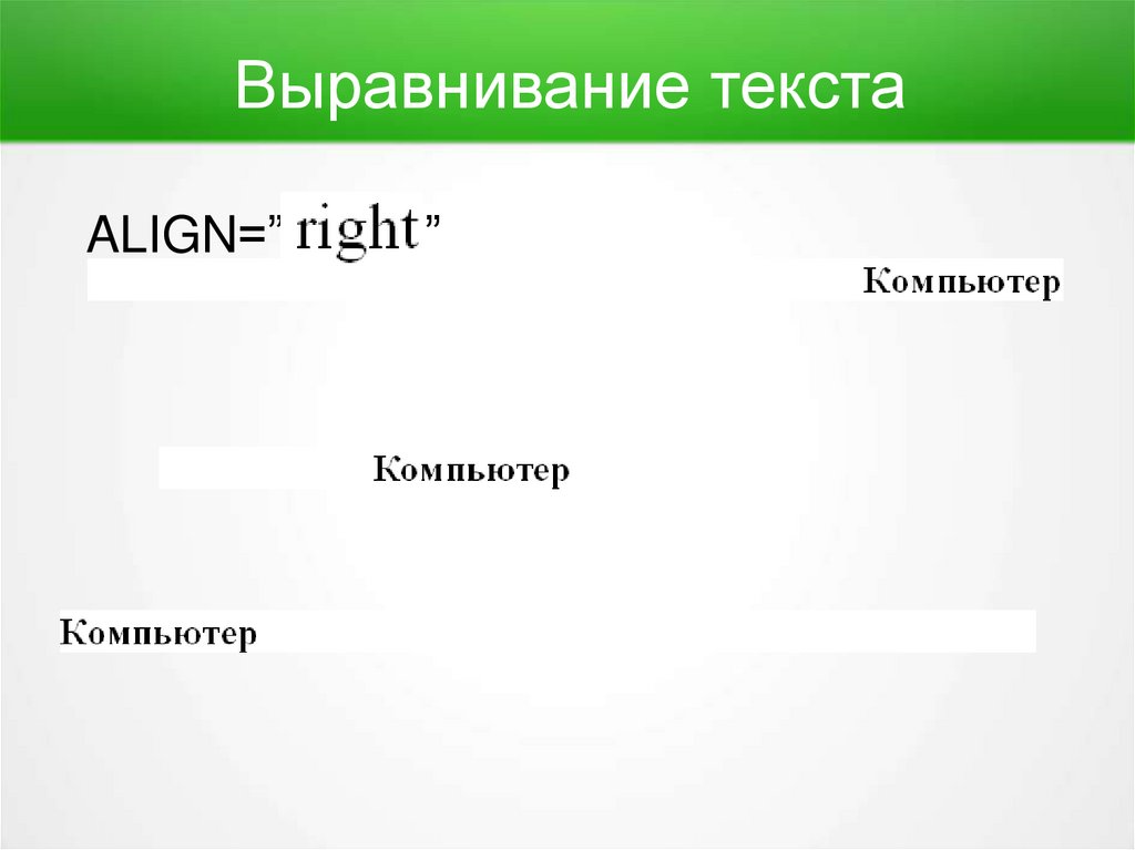 Выравнивание текстаALIGN=”