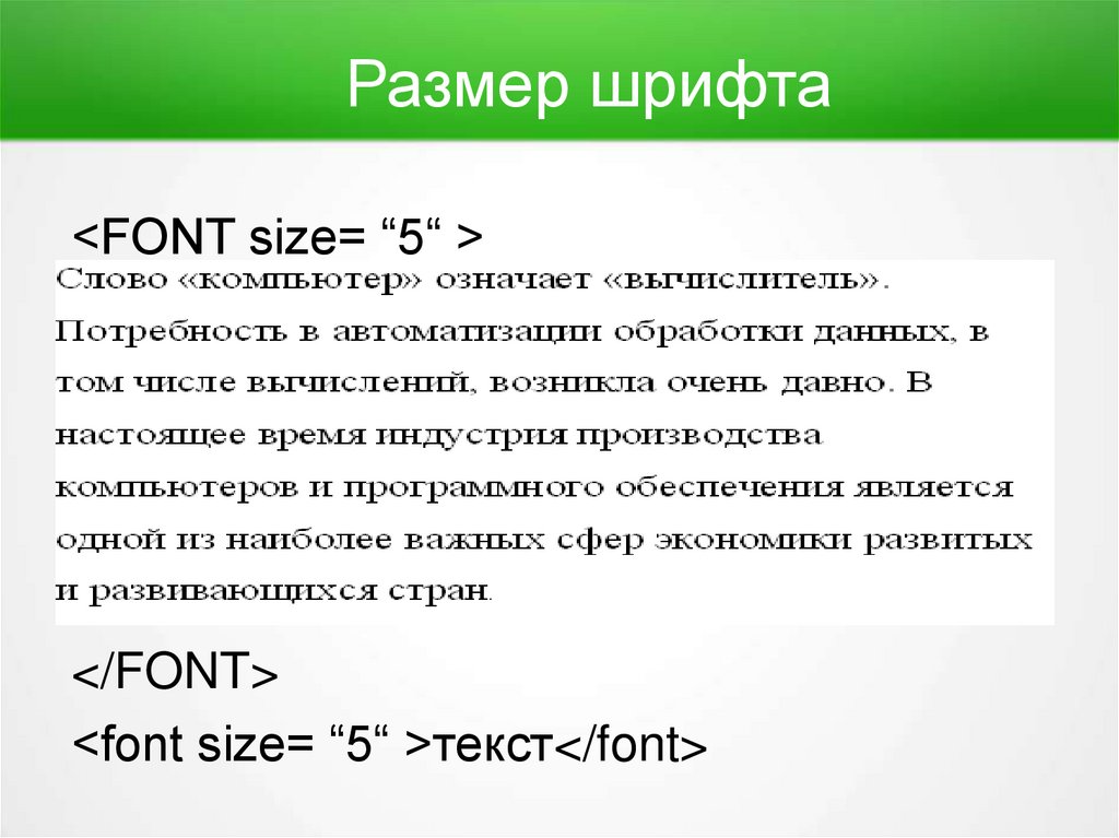 Размер шрифта<FONT size= “5“ >