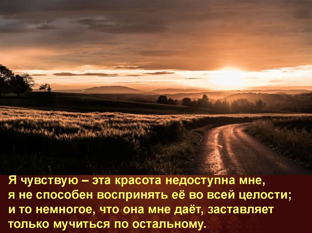 Я чувствую – эта красота недоступна мне,я не способен воспринять её во всей целости;