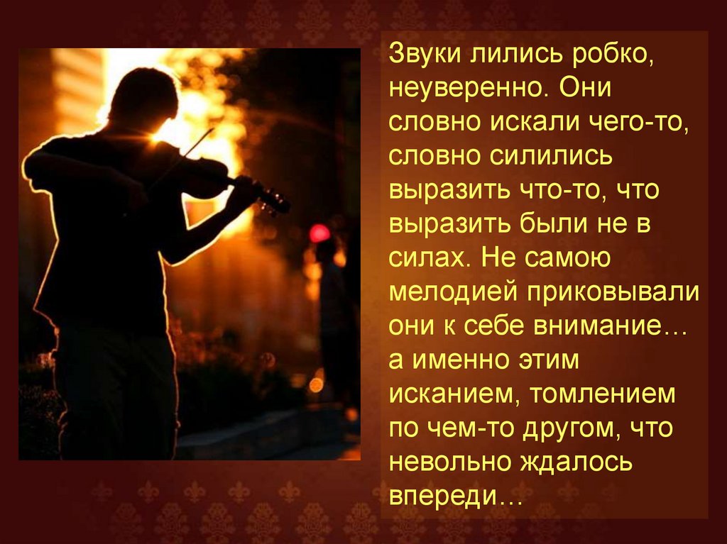 Звуки лились робко,неуверенно. Они