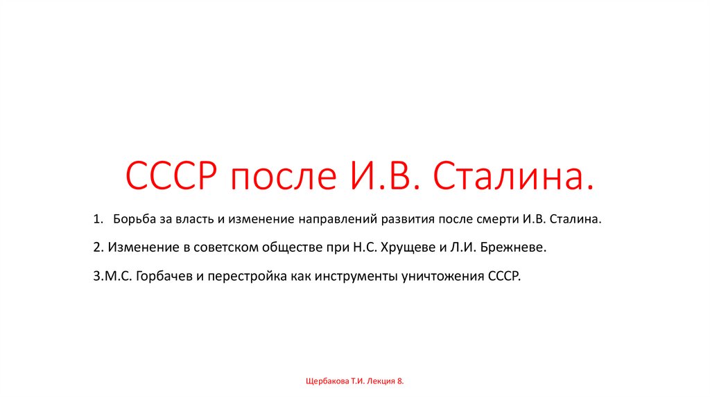 СССР после И.В. Сталина.1. Борьба за власть и изменение направлений развития после смерти И.В. Сталина.