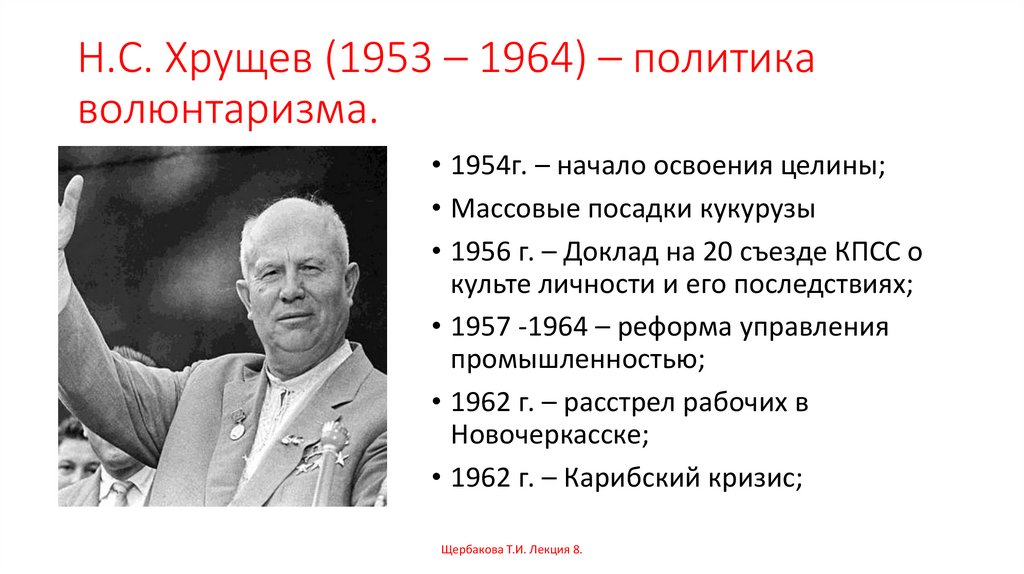 Н.С. Хрущев (1953 – 1964) – политикаволюнтаризма.