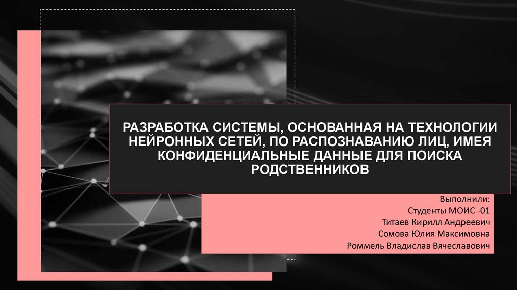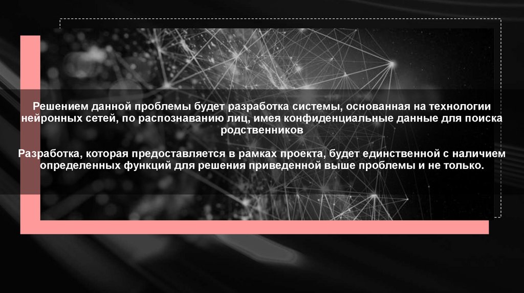 Решением данной проблемы будет разработка системы, основанная на технологиинейронных сетей, по распознаванию лиц, имея конфиденциальные данные для поиска