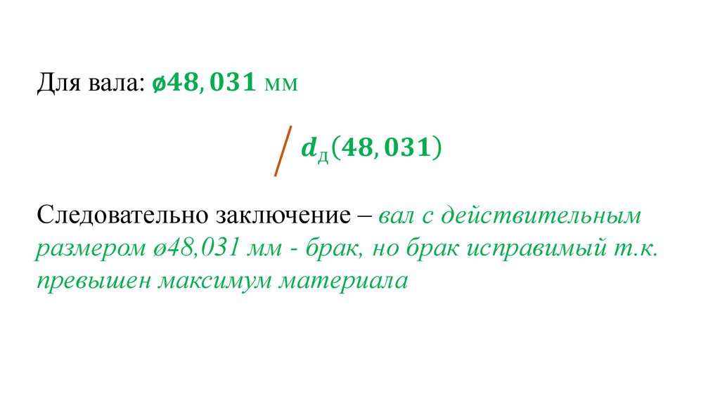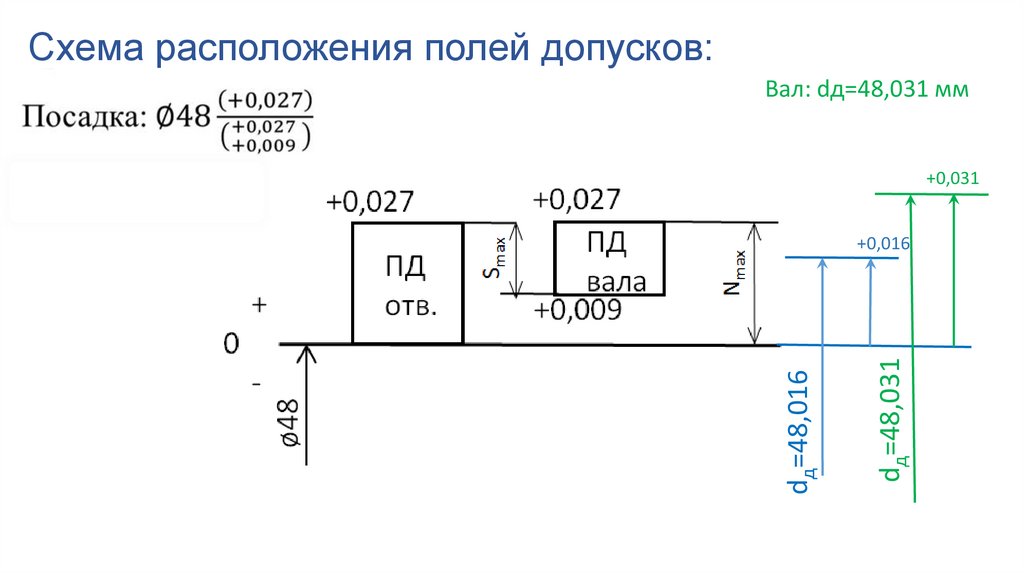 Схема расположения полей допусков:Вал: dд=48,031 мм