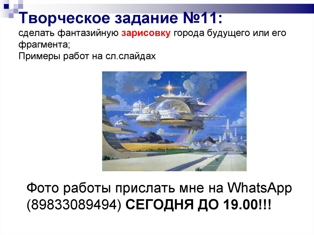 Творческое задание №11:сделать фантазийную зарисовку города будущего или его