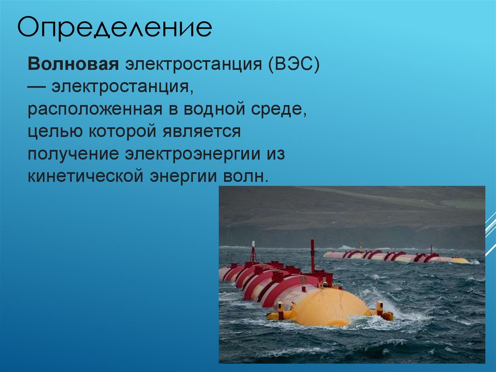 ОпределениеВолновая электростанция (ВЭС)