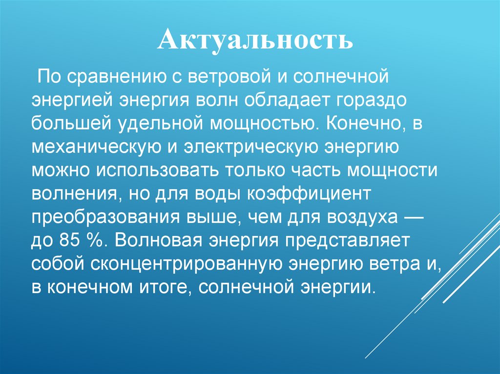 до 85 %. Волновая энергия представляет