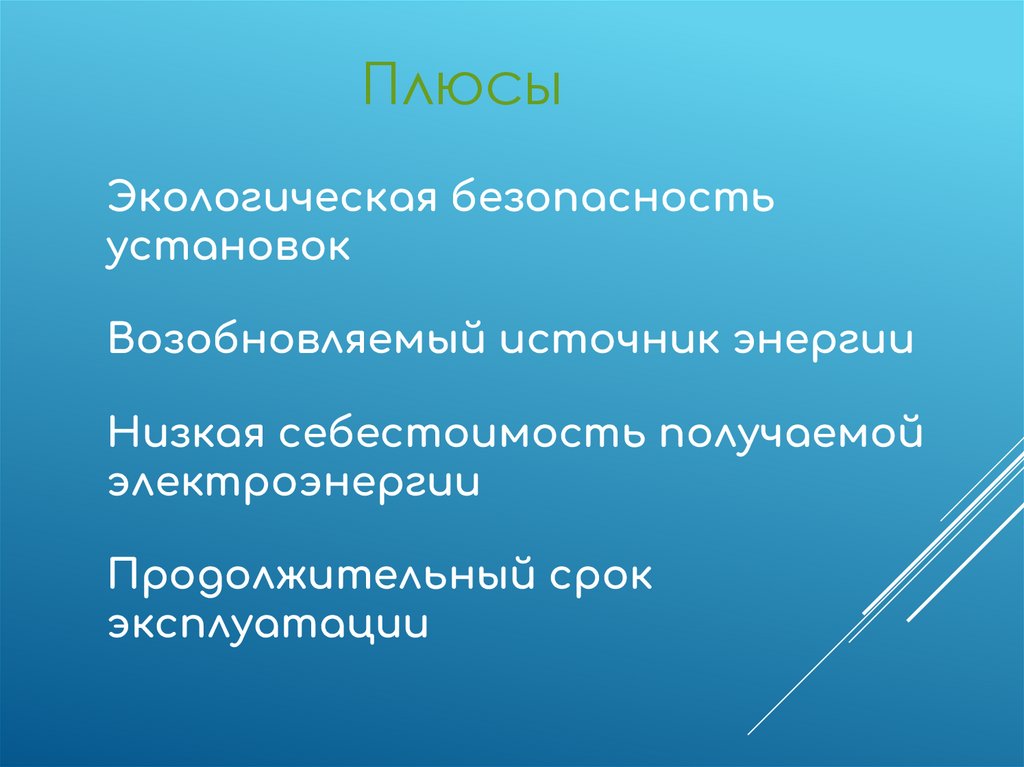 ПлюсыЭкологическая безопасность