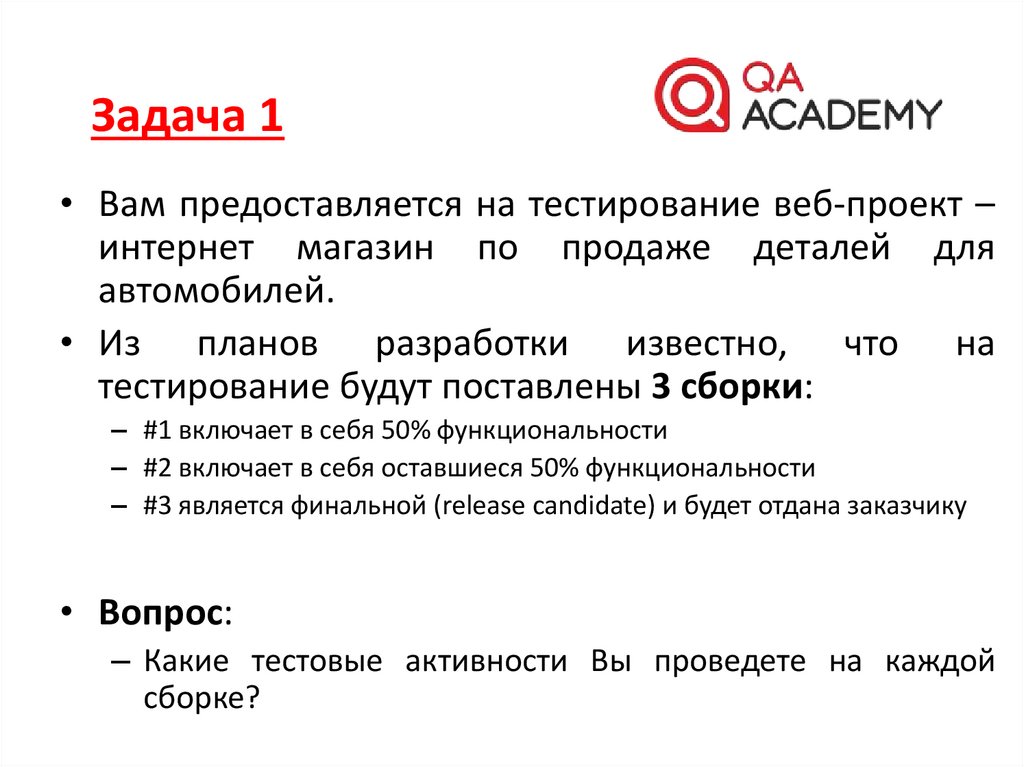 Задача 1• Вам предоставляется на тестирование веб-проект –