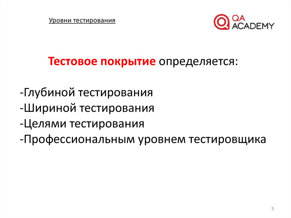 ЛЕКЦИЯ 5«Подходы к тестированию»