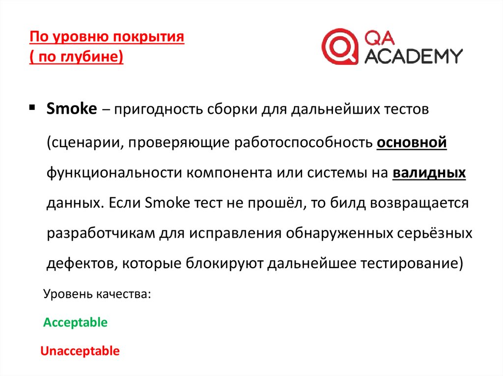 данных. Если Smoke тест не прошёл, то билд возвращается
