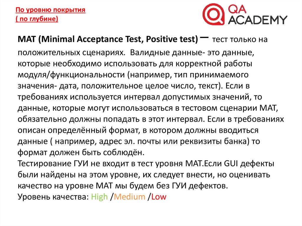 качество на уровне МАТ мы будем без ГУИ дефектов.