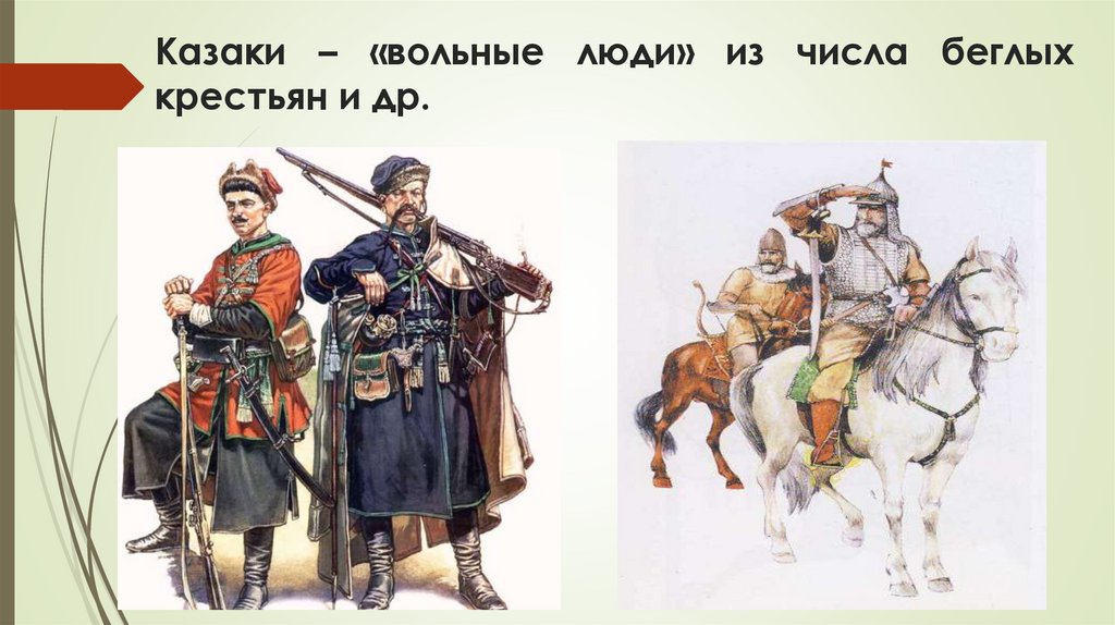 Казаки – «вольные люди» из числа беглыхкрестьян и др.