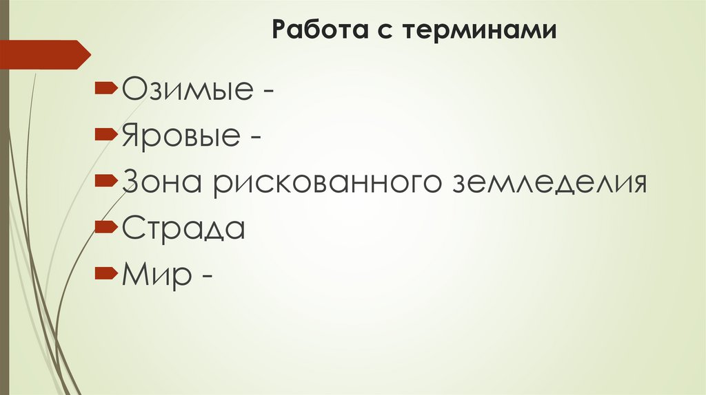 Работа с терминамиОзимые Яровые Зона рискованного земледелия