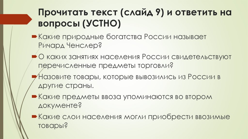 Прочитать текст (слайд 9) и ответить навопросы (УСТНО)