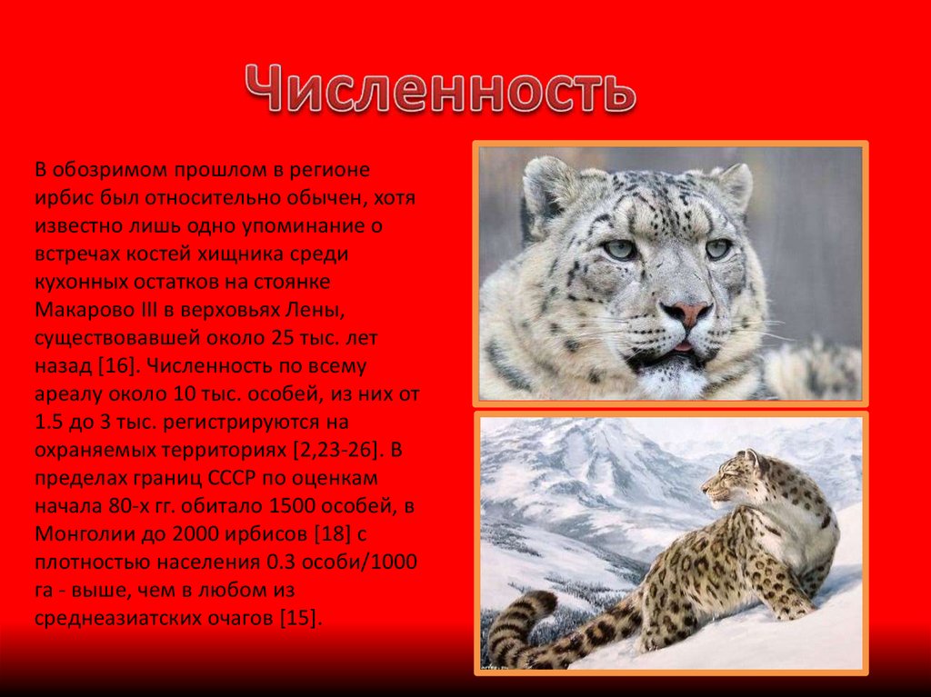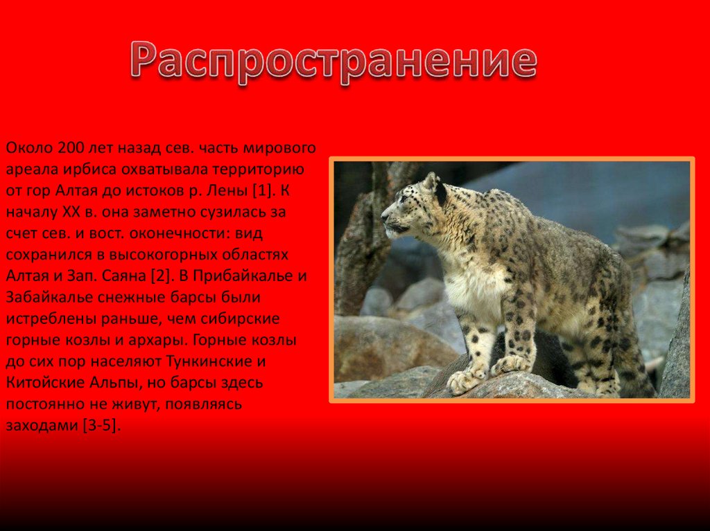 Около 200 лет назад сев. часть мировогоареала ирбиса охватывала территорию
