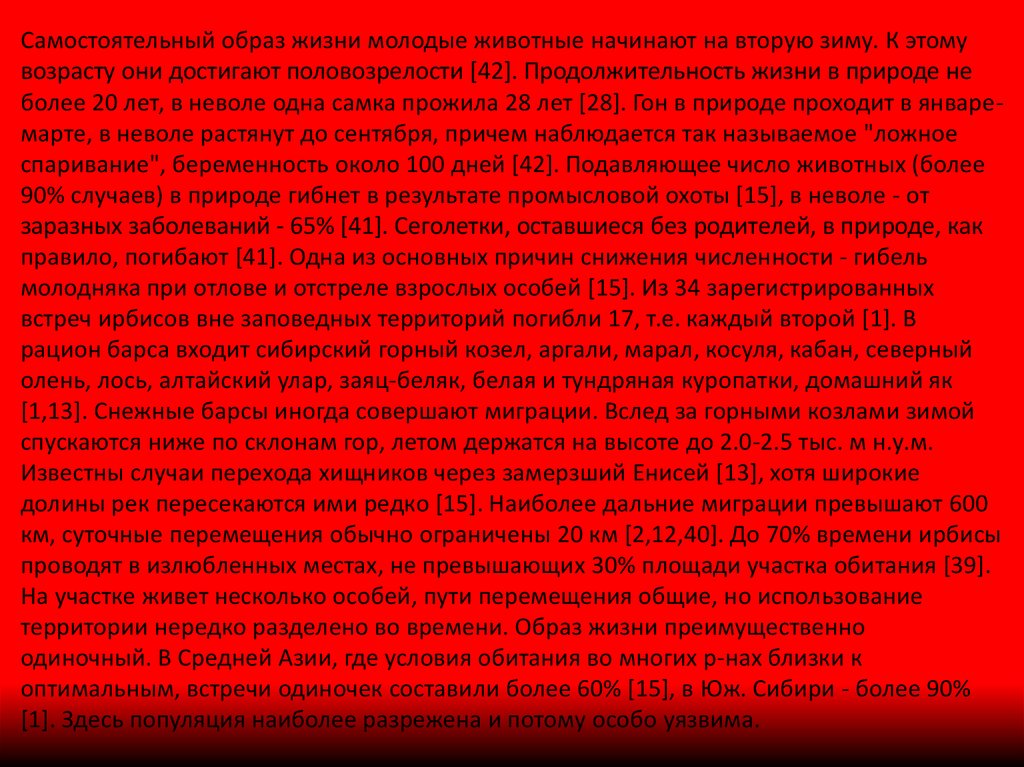 Демографические параметры популяции ирбиса Юж. Сибири неизвестны. Соотношение