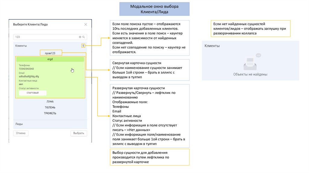 Модальное окно выбораКлиента/Лида