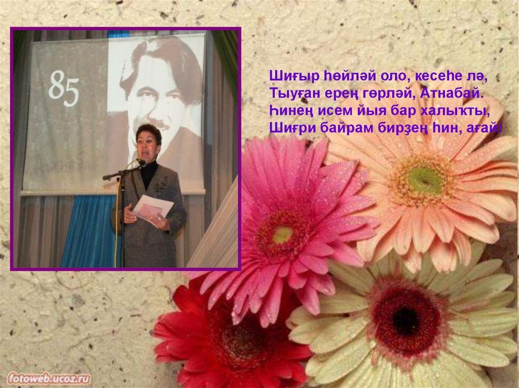 Шиғыр һөйләй оло, кесеһе лә,Тыуған ерең гөрләй, Атнабай.