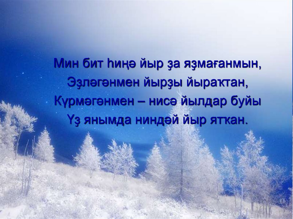 Мин бит һиңә йыр ҙа яҙмағанмын,Эҙләгәнмен йырҙы йыраҡтан,