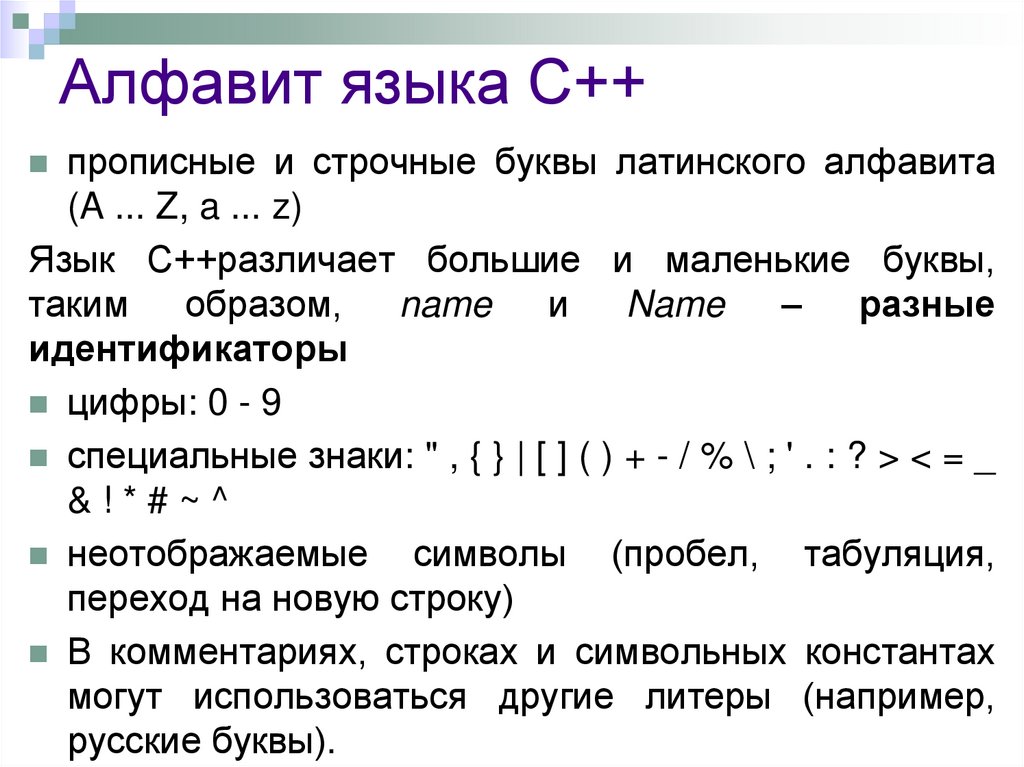 прописные и строчные буквы латинского алфавита(A ... Z, a ... z)