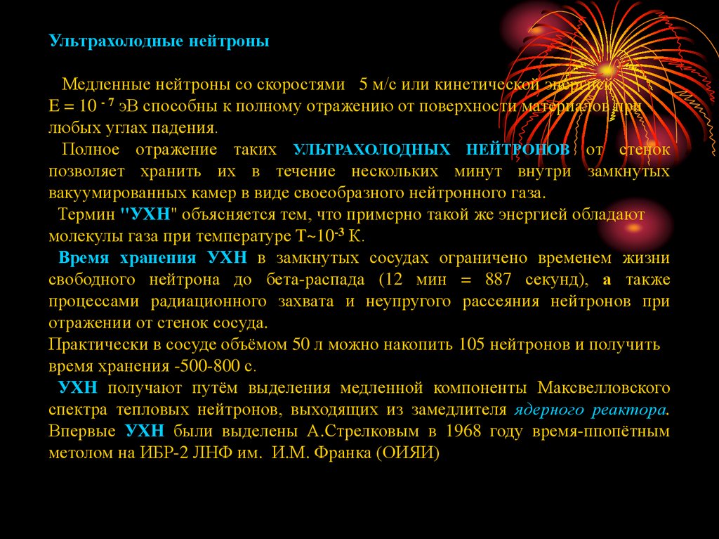 Ультрахолодные нейтроныМедленные нейтроны со скоростями 5 м/с или кинетической энергией