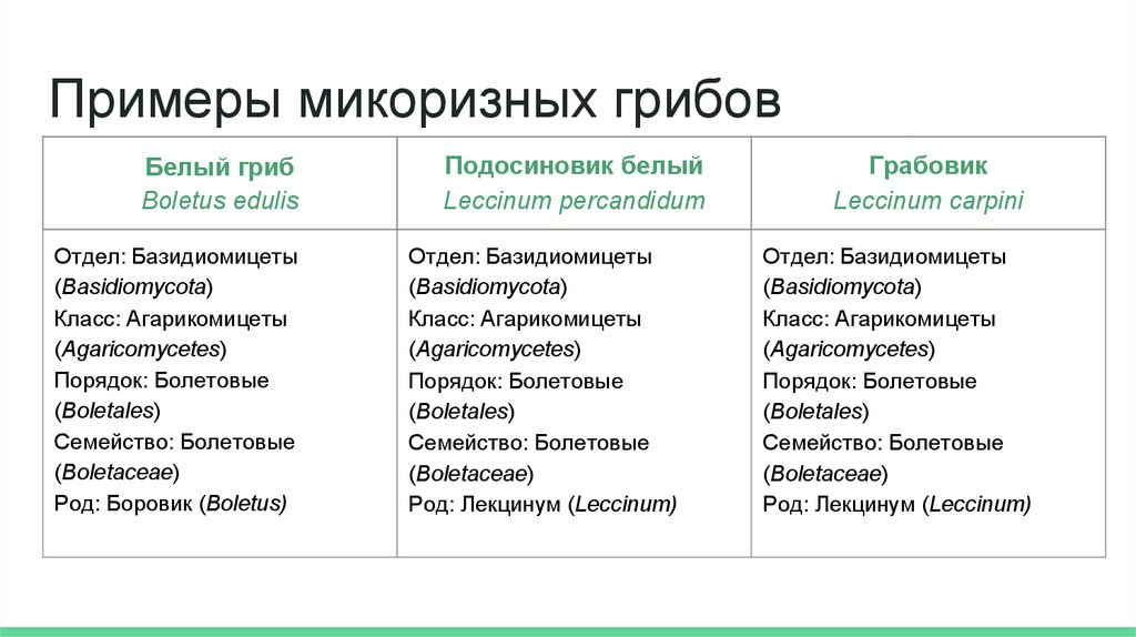 Примеры микоризных грибовБелый гриб