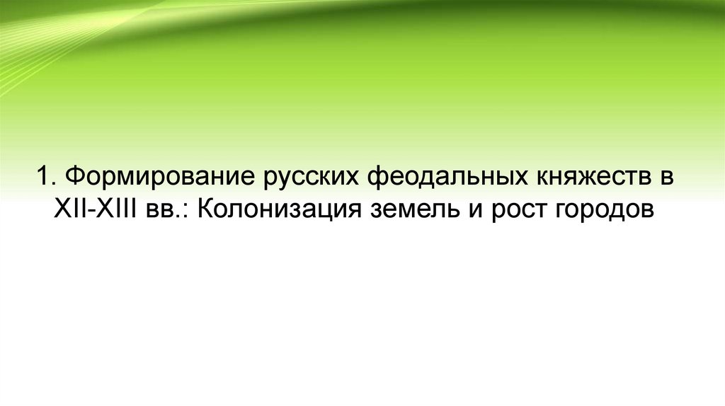1. Формирование русских феодальных княжеств вXII-XIII вв.: Колонизация земель и рост городов
