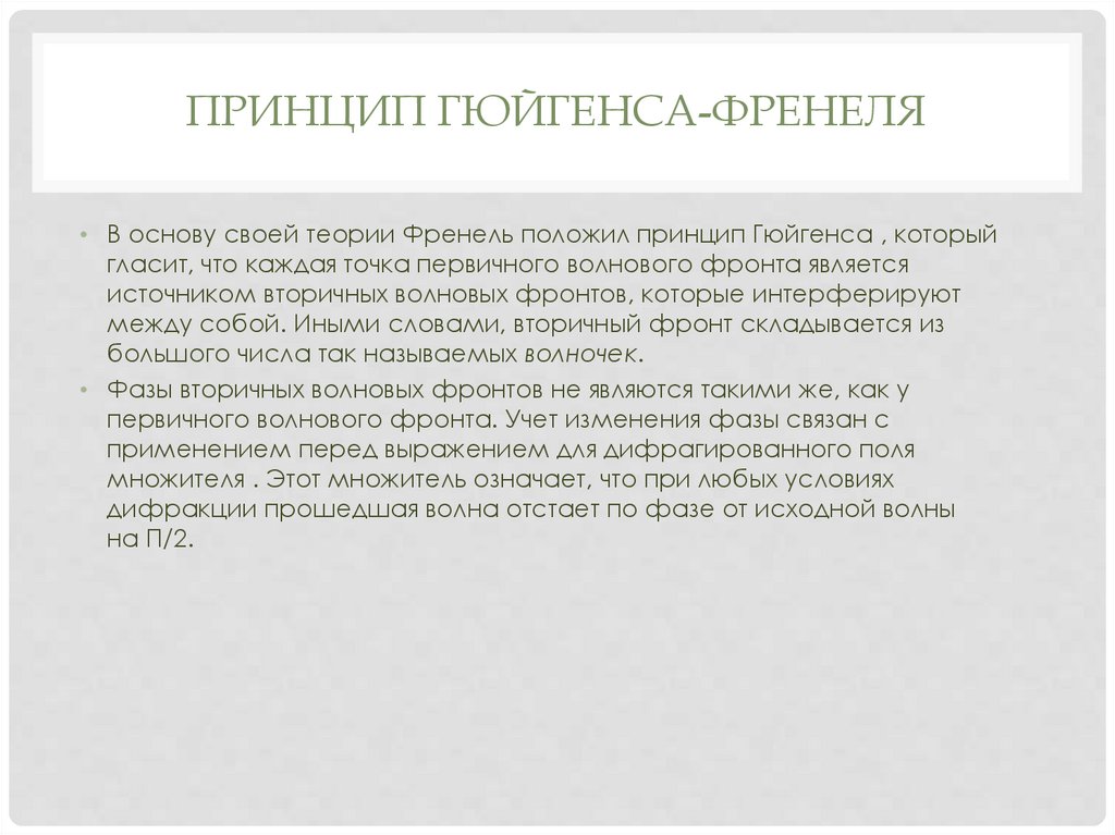 ПРИНЦИП ГЮЙГЕНСА-ФРЕНЕЛЯ• В основу своей теории Френель положил принцип Гюйгенса , который