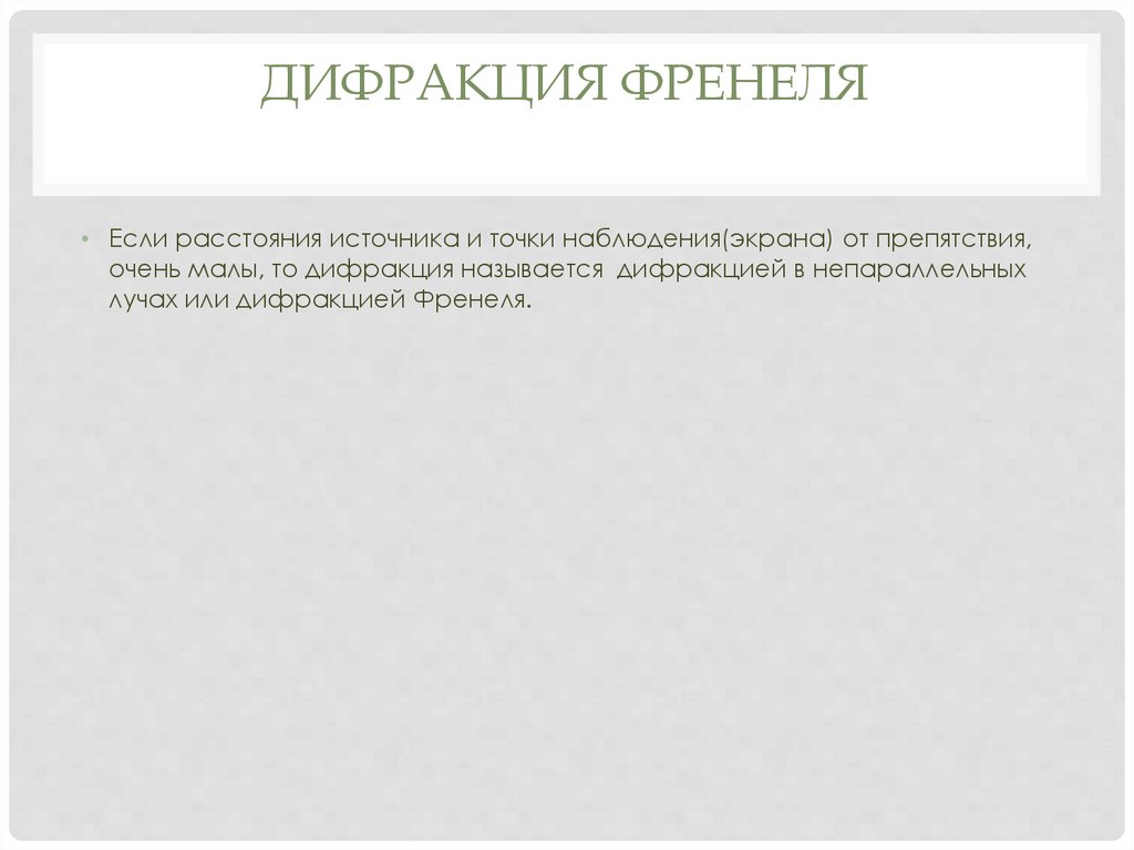 ДИФРАКЦИЯ ФРЕНЕЛЯ• Если расстояния источника и точки наблюдения(экрана) от препятствия,