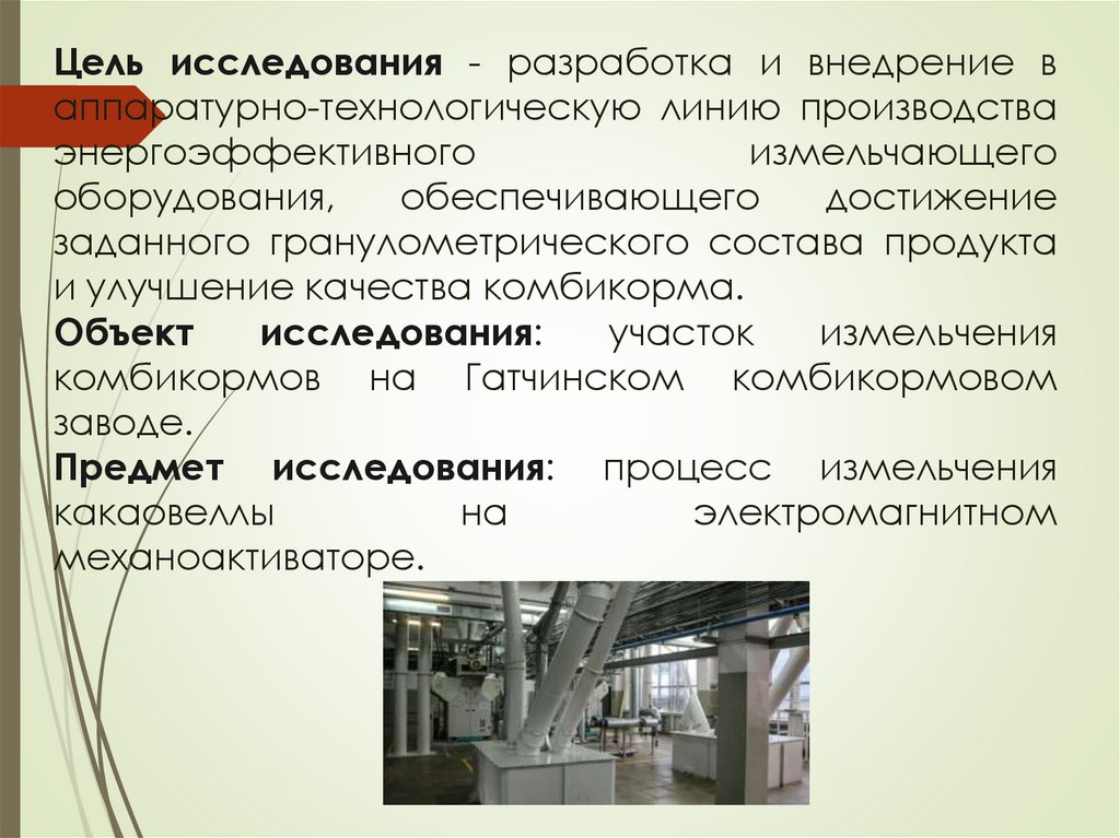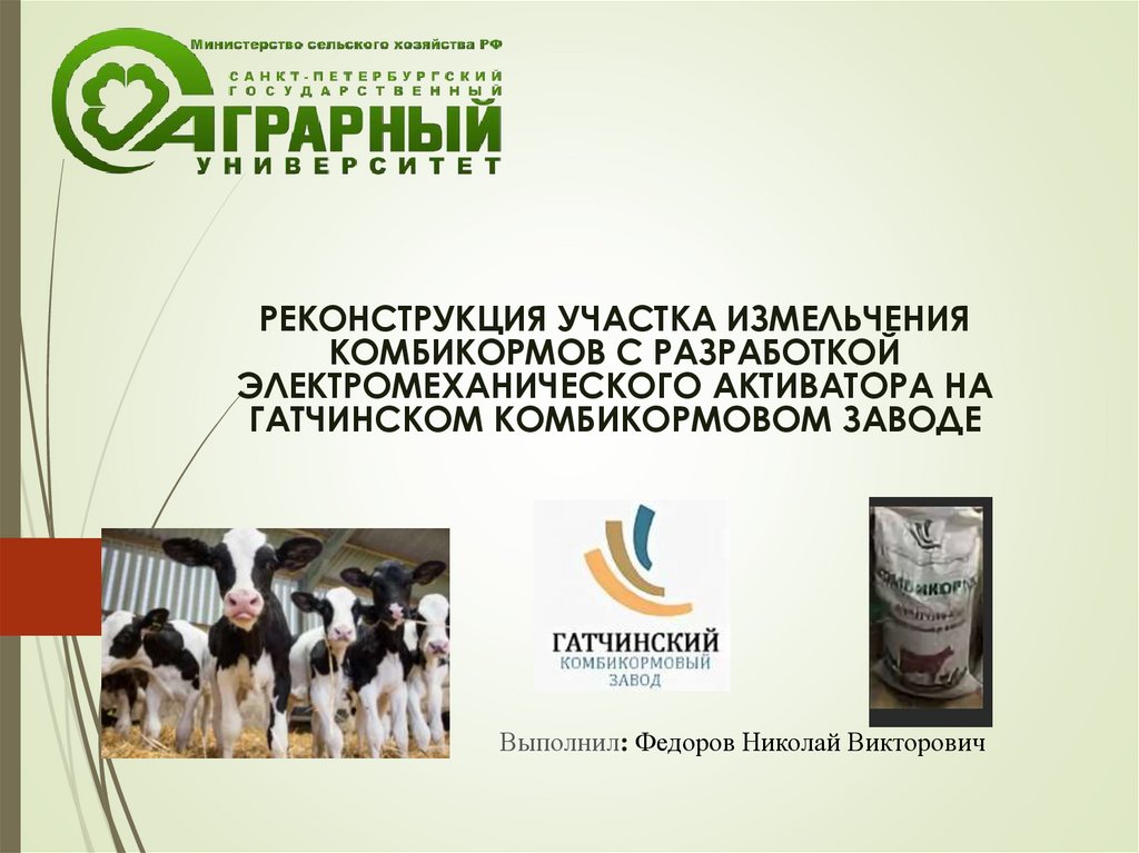 Реконструкция участка измельчения комбикормов с разработкой электромеханического активатора на гатчинском комбикормовом заводе
