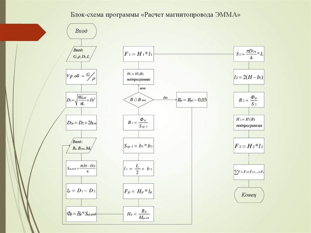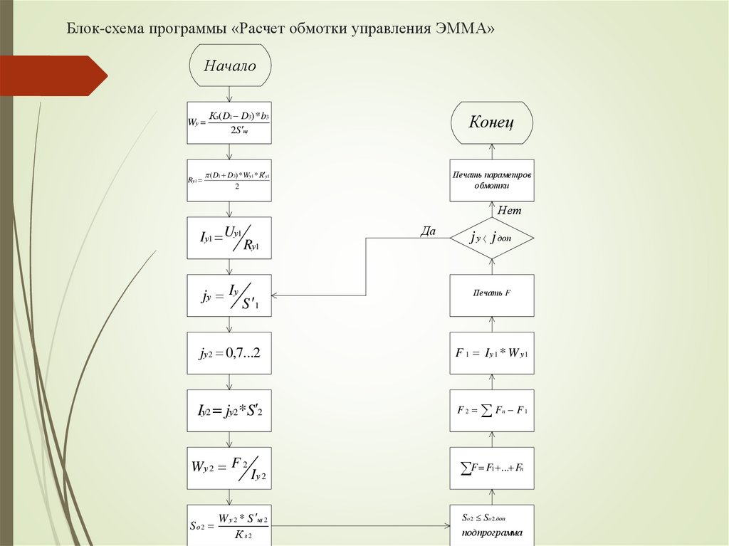 Блок-схема программы «Расчет обмотки».Блок-схема программы «Расчет обмотки управления ЭММА»