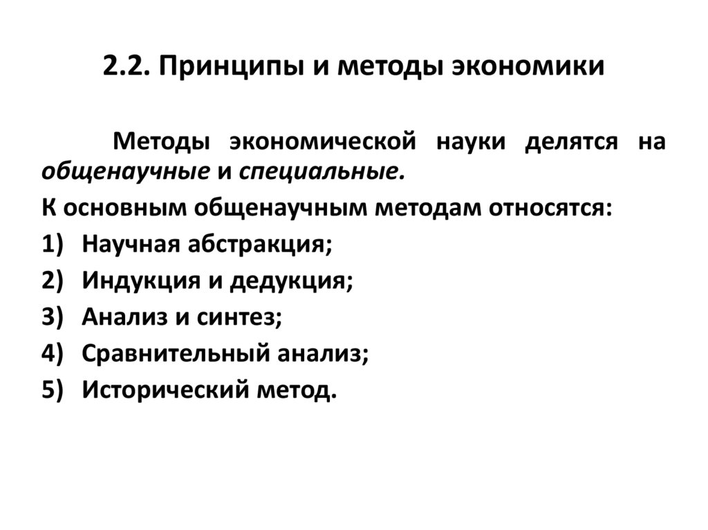 2.2. Принципы и методы экономикиМетоды экономической науки делятся на
