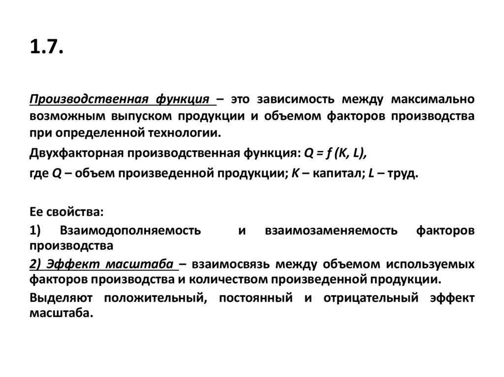 где Q – объем произведенной продукции; K – капитал; L – труд.