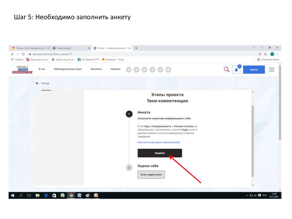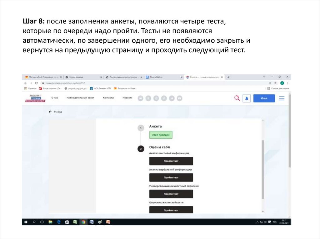Шаг 8: после заполнения анкеты, появляются четыре теста,которые по очереди надо пройти. Тесты не появляются