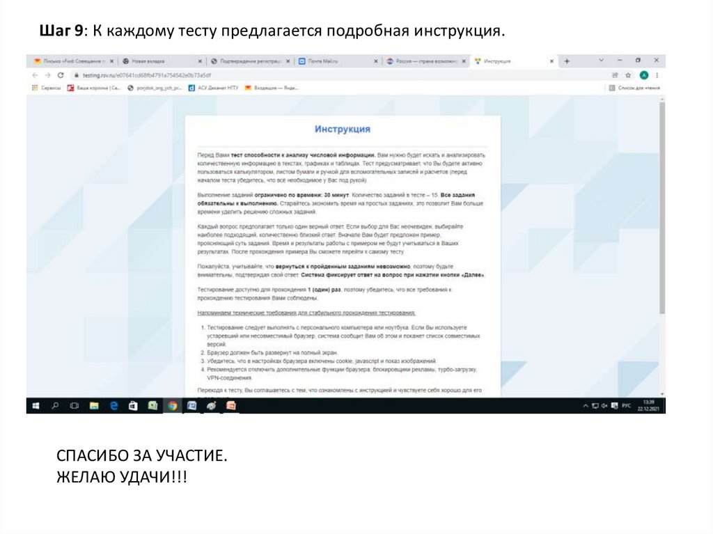 Шаг 9: К каждому тесту предлагается подробная инструкция.СПАСИБО ЗА УЧАСТИЕ.