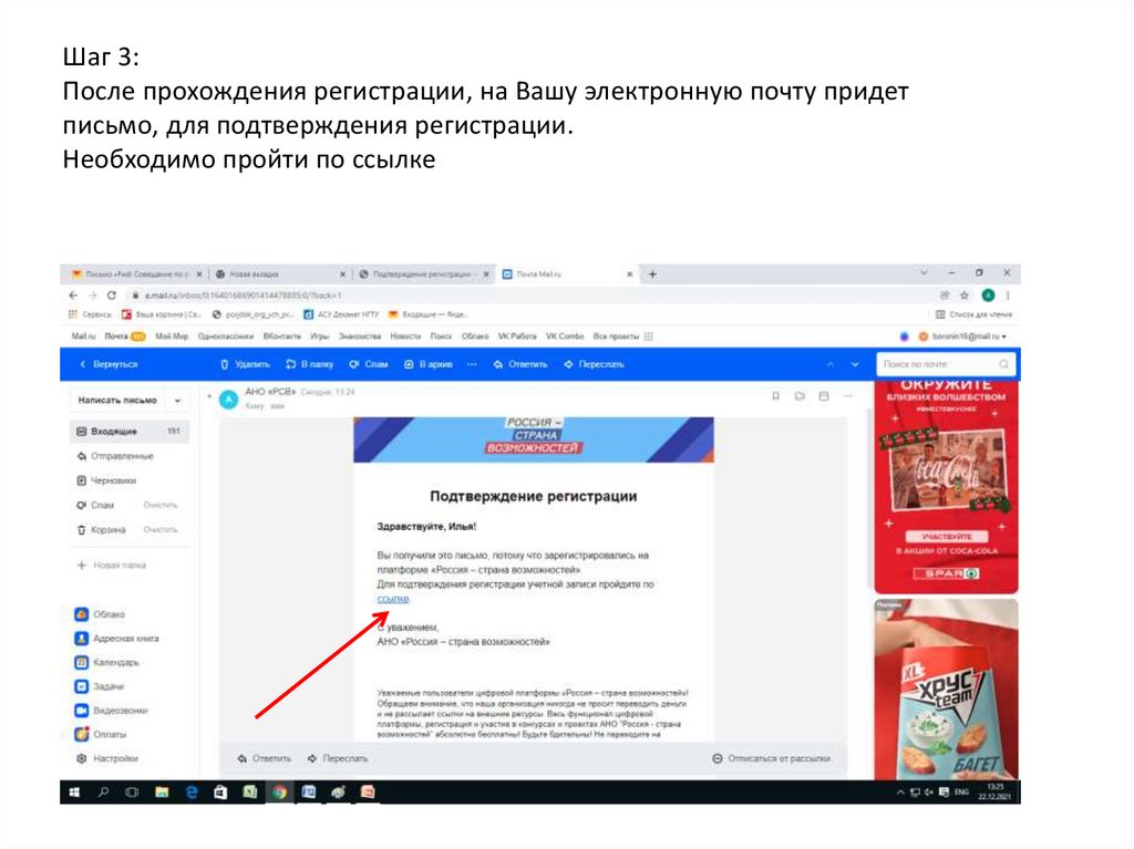 Шаг 3:После прохождения регистрации, на Вашу электронную почту придет