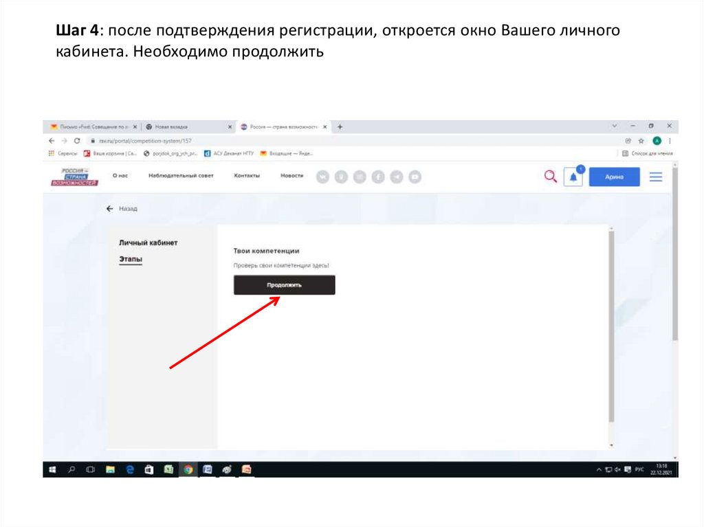 Шаг 4: после подтверждения регистрации, откроется окно Вашего личногокабинета. Необходимо продолжить