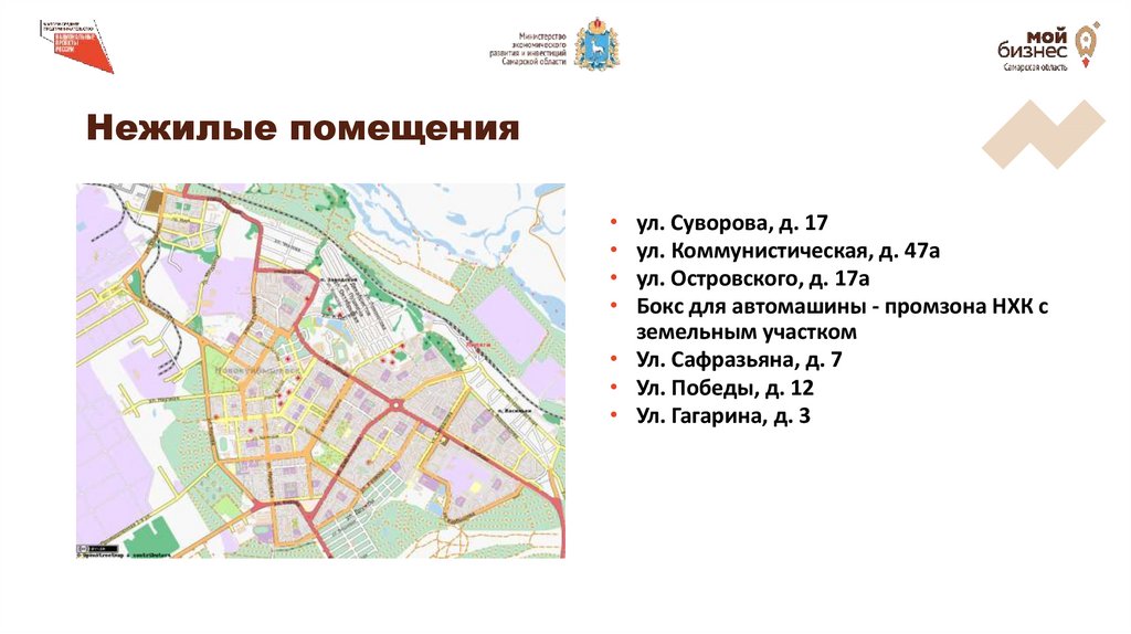 Объекты для Субъектов МСП, включенные в перечень муниципального имущества г.о. Новокуйбышевск
