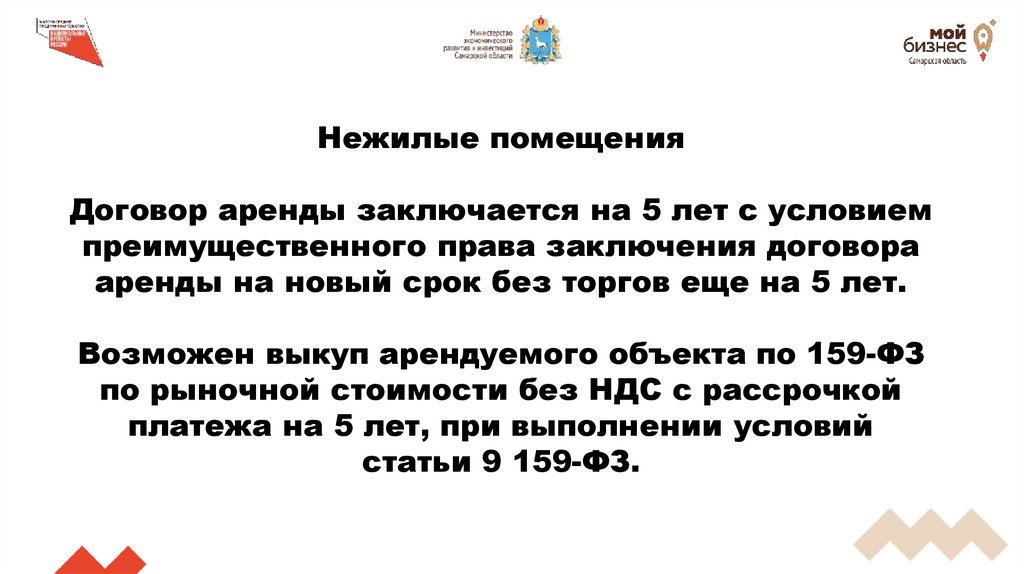 Нежилые помещенияДоговор аренды заключается на 5 лет с условием