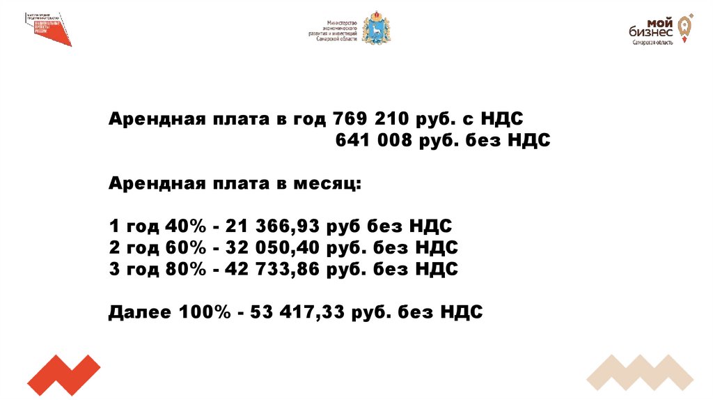 Арендная плата в год 769 210 руб. с НДС641 008 руб. без НДС